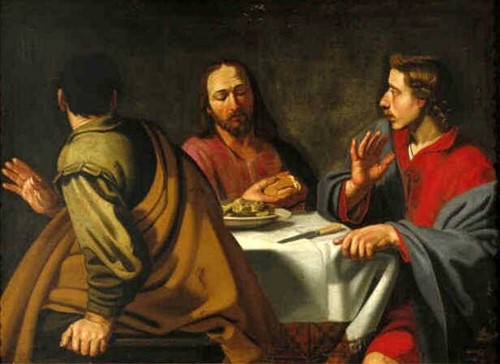 Breaking bread with disciples at Emmaus (Section 2) (Hendrick Bloemaert