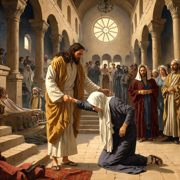 Jesus heals woman bowed together (Section 3) (Leslie Pardew)